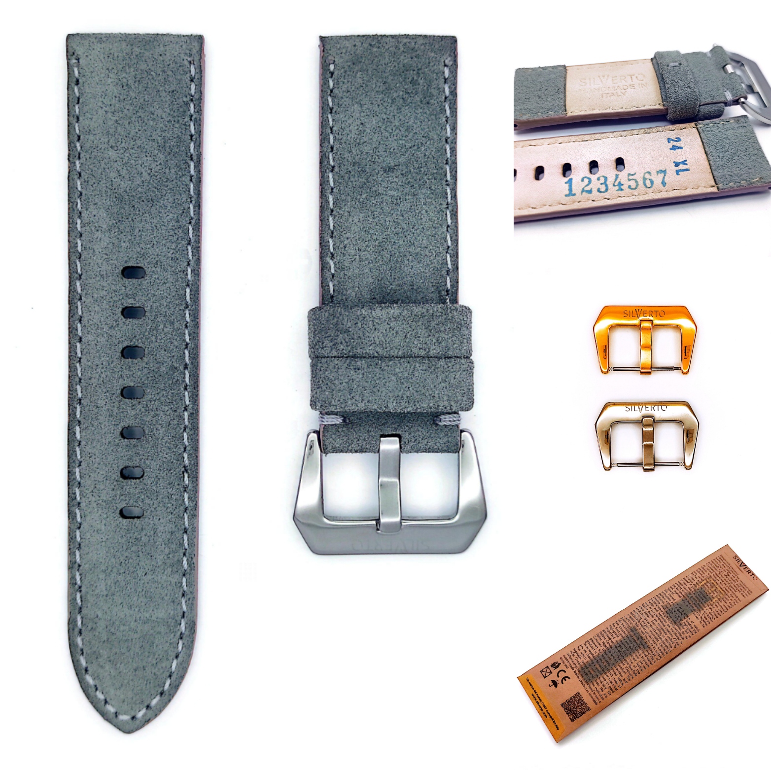 با بند ساعتهای چرم طبیعی سیلورتو حس جدیدی را تجربه کنید!محصولات ما از بهترین چرمهای ایتالیایی ساخته شده و علاوه بر زیبایی،بیشترین طول عمر را به شما هدیه میدهند.سیلورتو متنوعترین طرحها،رنگها و سایز بندی را به شما ارایه داده و این یک انتخاب ایده آل است برای کسانی که سایز،رنگ،طرح و جنس مورد نظر را در بازار نمیتوانند پیدا کنند.